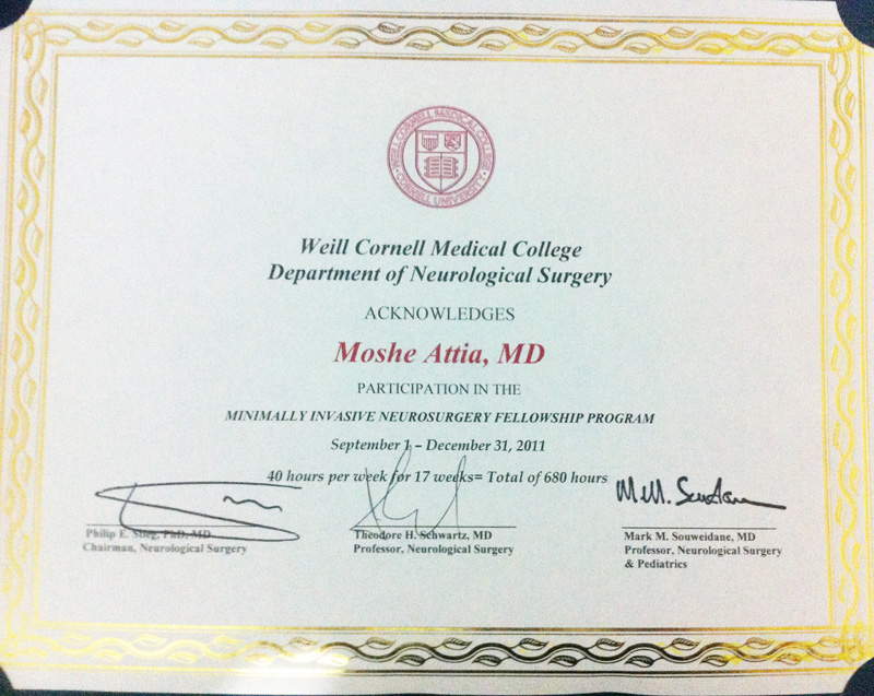 > Research fellowship in endoscopic pituitary and skull base surgery at New York Presbyterian Hospital, Weill Medical College of Cornell University in New York, USA, under the mentorship of Prof. Schwartz (9/1/2011 – 12/31/2011).
